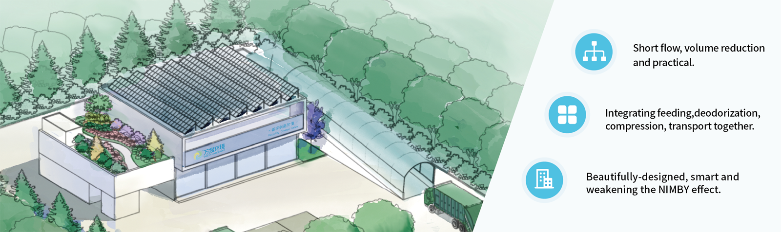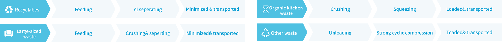 Applicable to recyclables, large-size waste, food and kitchen waste, and other waste from communities.