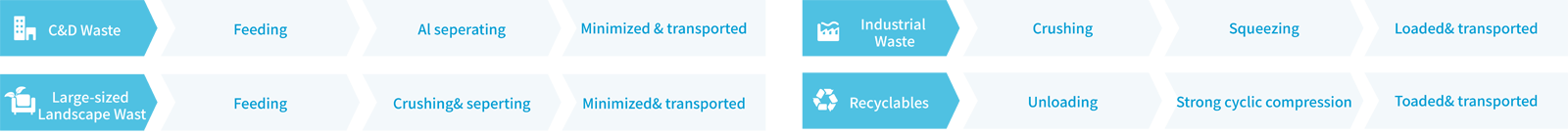 Applicable to C&D waste, large-size waste, industrial waste and recyclables, etc..