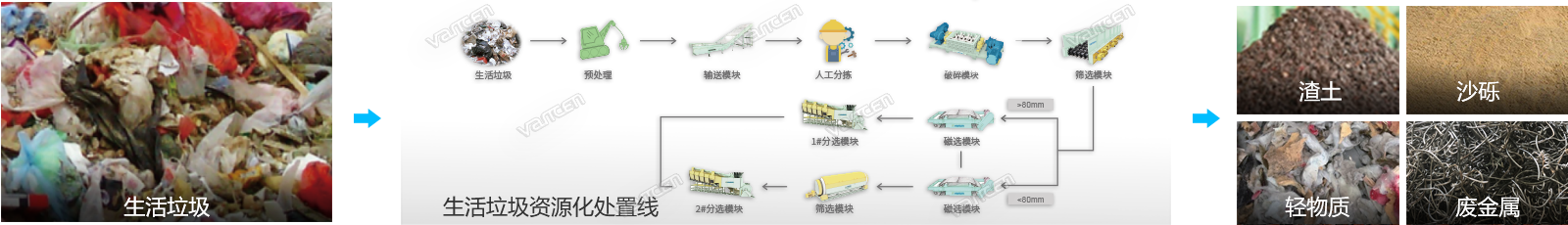 Vancen Environment Technology Co., Ltd. is an Equipment & Operation Supplier for Low-carbon Optimized Solid Waste Resources integrating R&D design, equipment manufacturing, complete set integration, engineering installation and investment operation services, committed to construction and decoration waste, large-sized landscape waste, stale waste, recyclables, waste recycled materials, MSW waste compression transfer station and other solid waste fields to provide customers with one-stop services, and provides advanced technology and equipment in the national environmental protection new infrastructure "Filling Gaps" project.